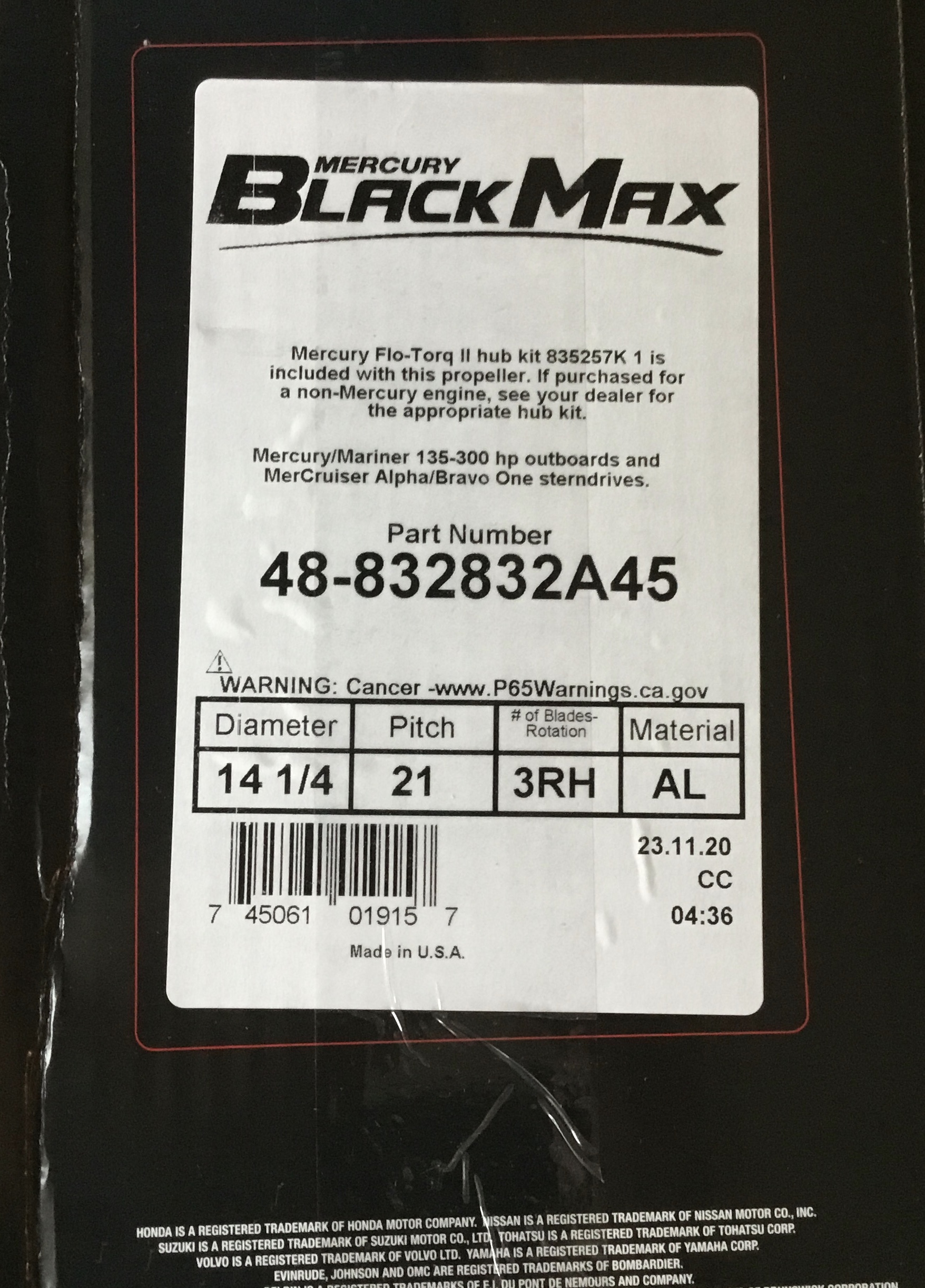 Інформація про продукт "Винт гребний Black Max 14 1/4 X 21P Mercury Mercruiser 48-832832A45 832832A45 835257K 1"