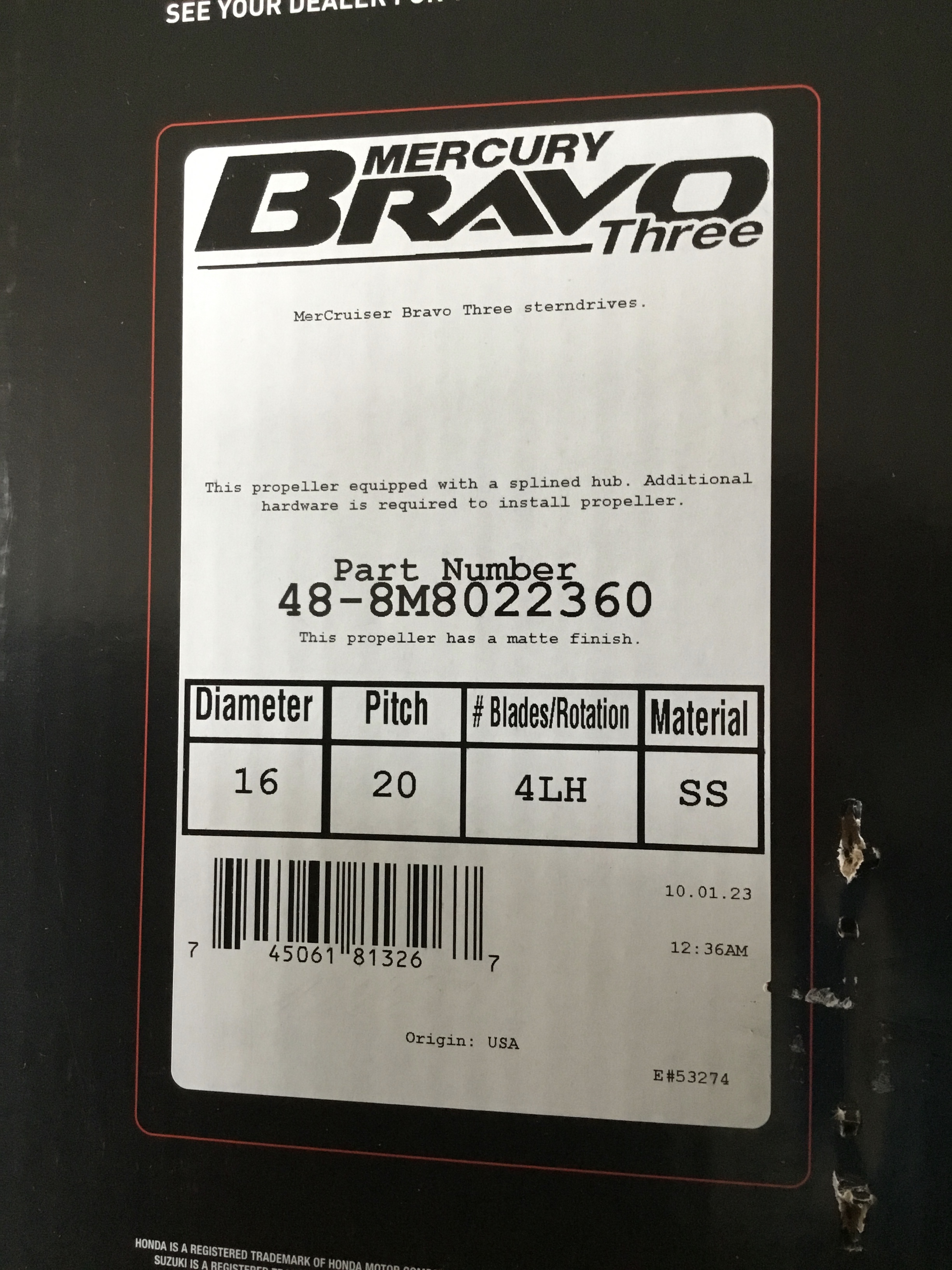 Інформація про продукт "Винт гребний лівый Bravo3 Mercury-Mercruiser 48-8M8022360 8M8022360 Bravo 3 16 X 20 LH Front Propeller"
